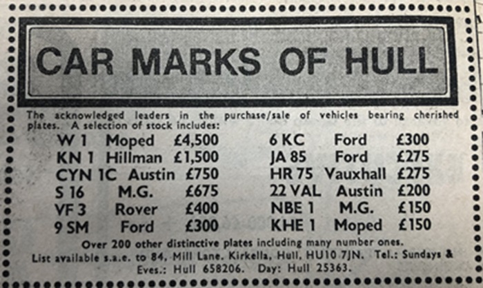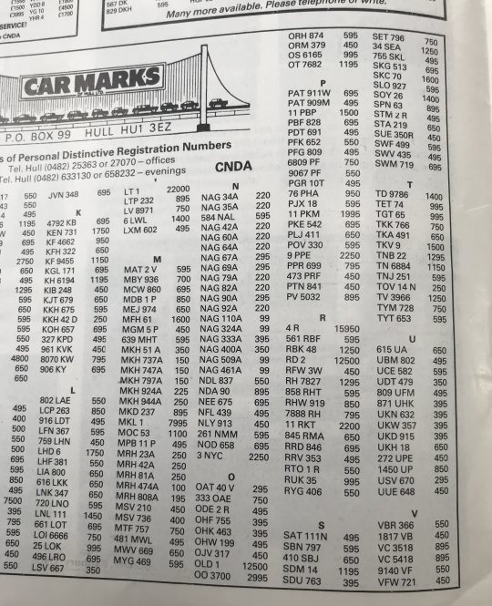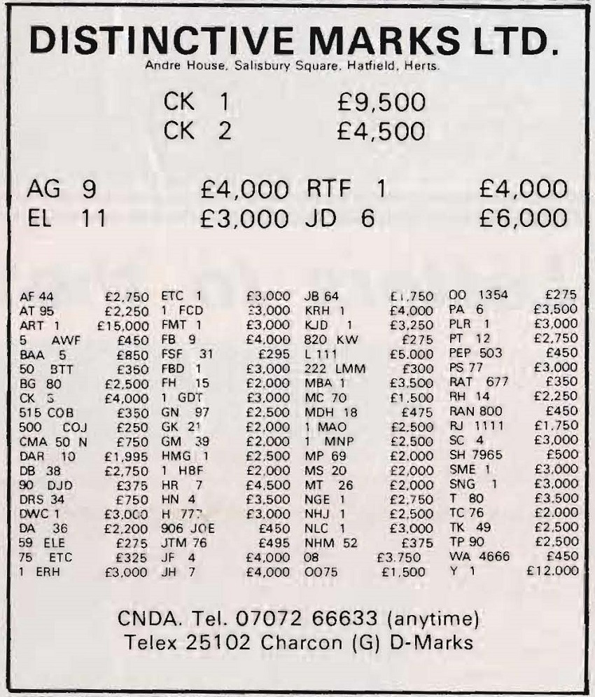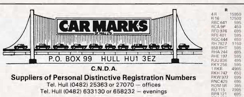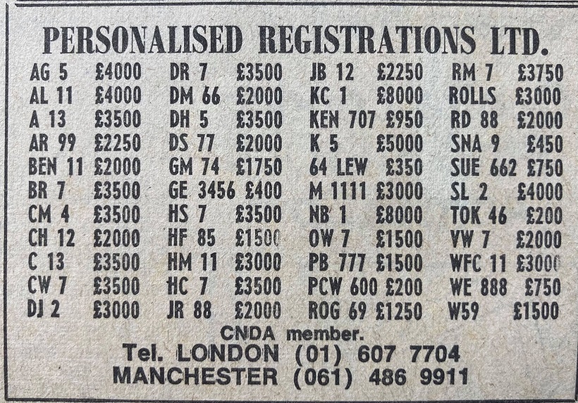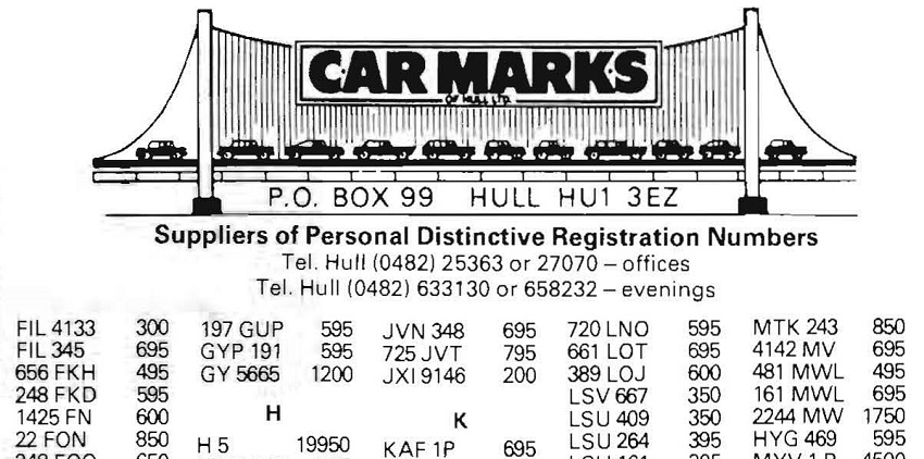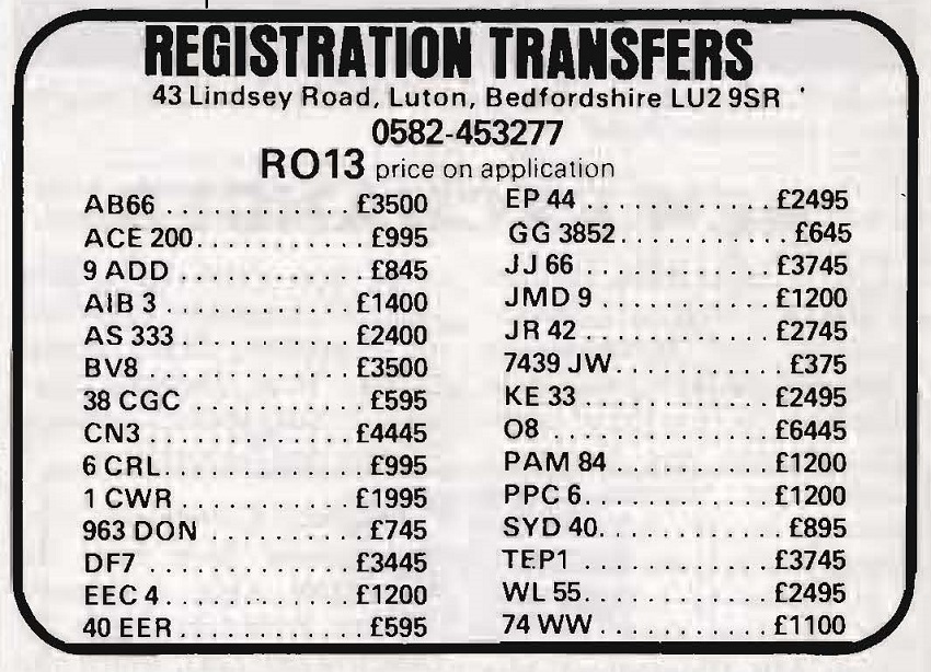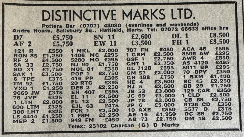 December 1980 advert here showing P 5 for £6K. Have a look at the rest of the plates available!!