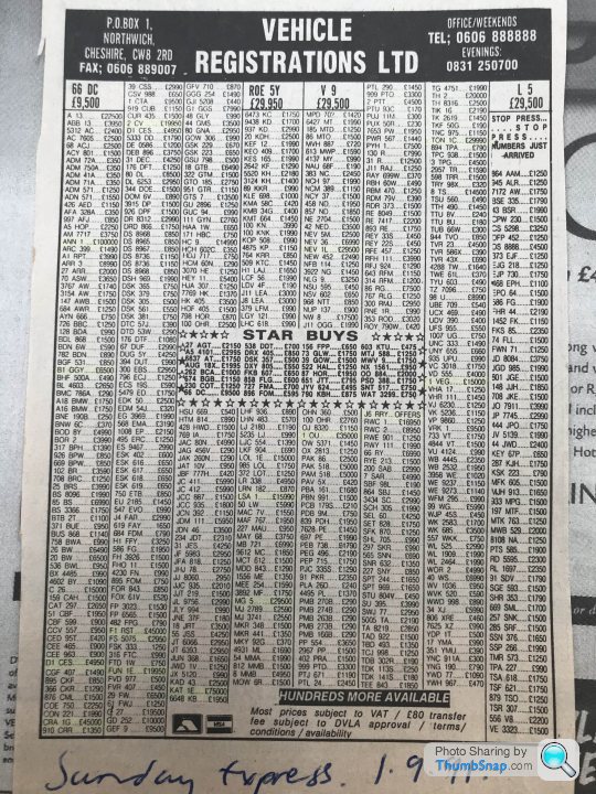 An ad from the Sunday Express from 1991, V 9 and L 5 offered for £29,500 each