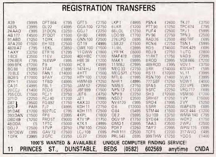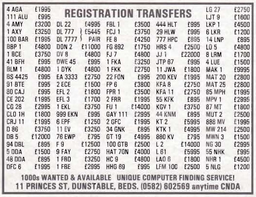 An ad from Car Numbers magazine from June 1988 and has 4 R advertised for £15,950