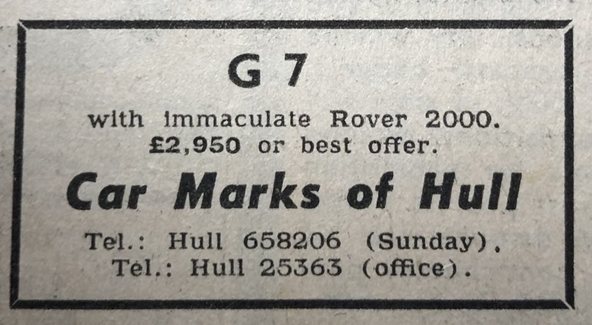 G 7 advert from 1972 for £3K