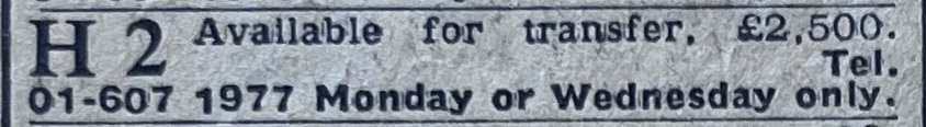 An ad from 1980, H 2 for £2,500