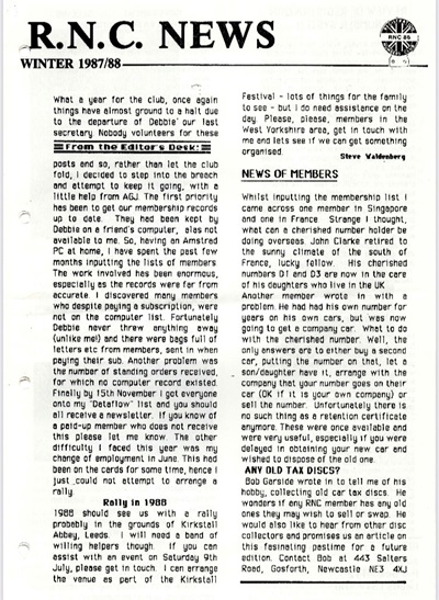 These were published and printed by Tony Hill of Elite Registrations to a small subscriber base between November 1980 and Spring 1995. There were 93 issues to collect. They varied in format, colour printing and paper size. Earlier issues were tabloid-paper style and 8 paged whereas the later ones were full-colour fronted and contained 40+ pages. There are thought to be less than 10 sets this complete in existence.
