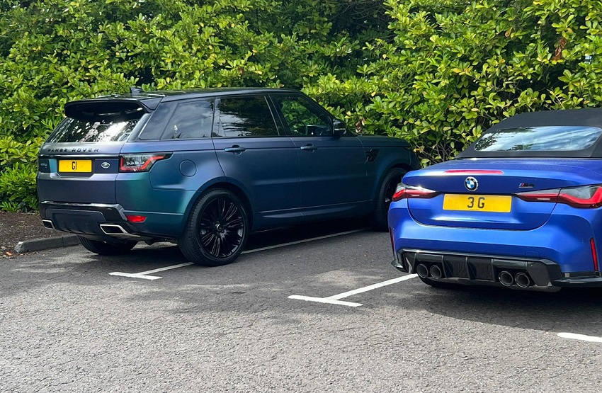 Gillian Deans of Dundee owned the largest private collection of 1x1's, 10 in total at one point. Running left to right, second vehicle was her Aston Martin wearing G 1, fifth is an Audi wearing 9 G, sixth a Range Rover displaying 4 G, seventh another Range Rover showing 5 G, eighth an Audi R8 showing 8 G, ninth a Porsche with 2 G and although you can't see the plate in this picture it's an Audi with 6 G.